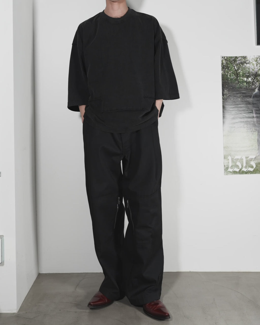 26SS新作アイテム。定番のCASTLE T。石畳の通りを散策し、騎士や廷臣たちの響きが空中にこだまする様子を思い描きながら制作したとされる1枚。ヨークで中世建築の凹凸を表現する事で、ブランドらしさを演出し、唯一無二のデザインに。シンプルにカッコイイやつ。ウォッシュの掛かった黒で今の気分に丁度良いかと。